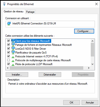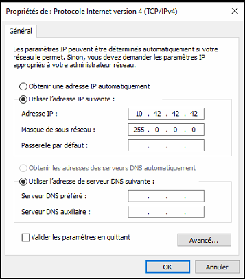 Modifier les paramètres de connexion de la carte sur lequel est branché la camera IP