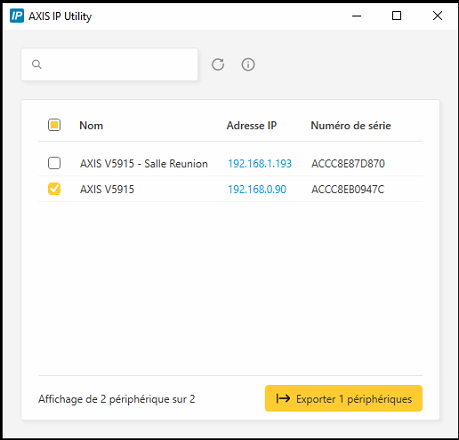 Plusieurs adresses IP de camera peuvent apparaitre.