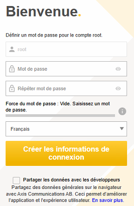 S'il s'agit d'une première configuration, la camera demandera de créer un mot de passe pour l'utilisateur root,